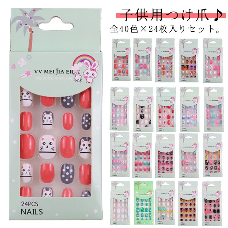 全40種類 24枚入り 女の子 ネイルチップセット キッズ つけ爪 子供用 ネイル シール ショート ネイルアート 粘着テープ式 ネイルチップ キッズ パーティー コスプレ 仮装