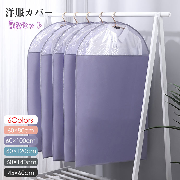 服カバー 5枚セット 洋服カバー 衣類収納 不織布 防塵 防湿 スーツカバー 衣装カバー 吊り下げ収納 衣類カバー 衣類収納袋 ダストカバー 服ダストカバー 服収納袋 衣類長期保管タンス 5色