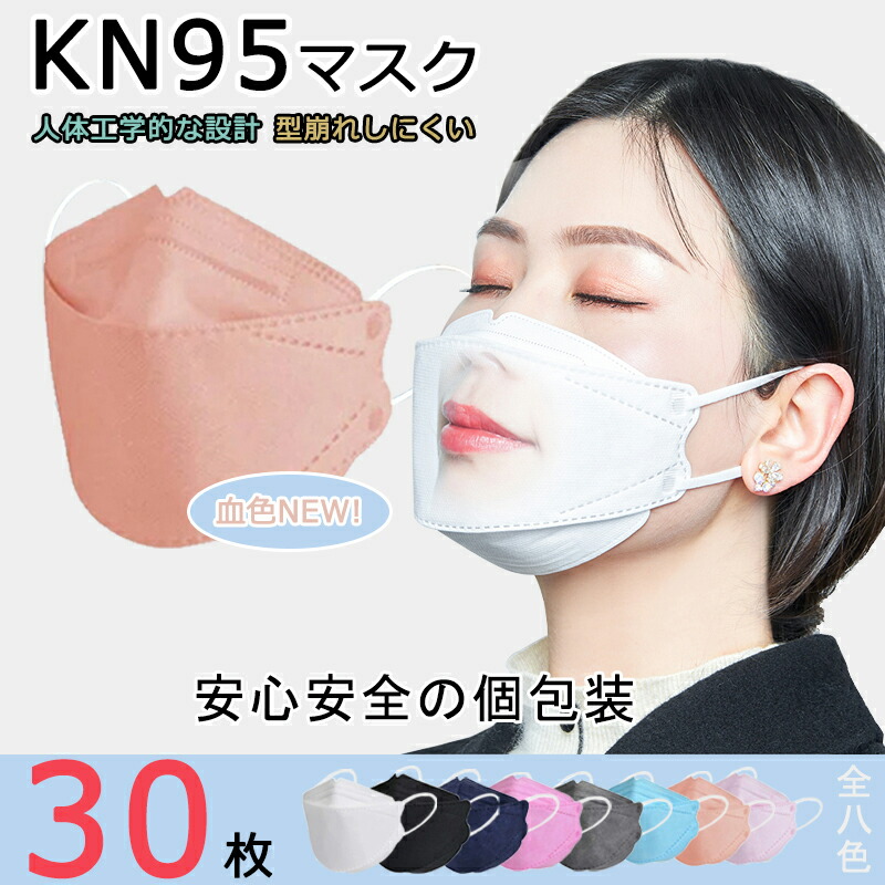 立体 マスク 新開発 30枚入り kn95 不織布 個包装 4層フィルター構造 3d 大人マスク 使い捨てマスク 夏 使い捨て 花粉 安心 清潔 個装