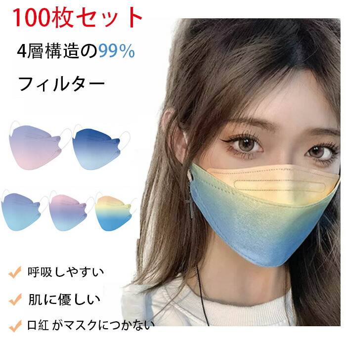 立体マスク 魚型マスク 不織布マスク 100枚セット 3d 人気沸騰 使い捨てマスク 小顔 衛生マスク カラー 通気性 快適 大人用 男性 女性 uvカット 肌に優しい ホワイト マスク 4層フィルタ