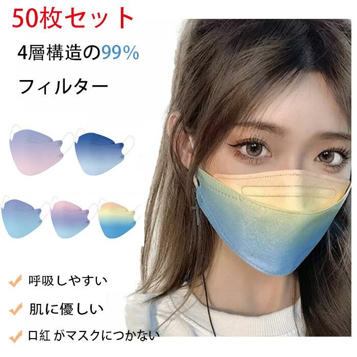 KN95 マスク 50枚入 魚型マスク kn95 立体 新開発 不織布 個包装 4層フィルター構造 3d 大人マスク 使い捨てマスク 夏 使い捨て 花粉 安心 清潔 新色