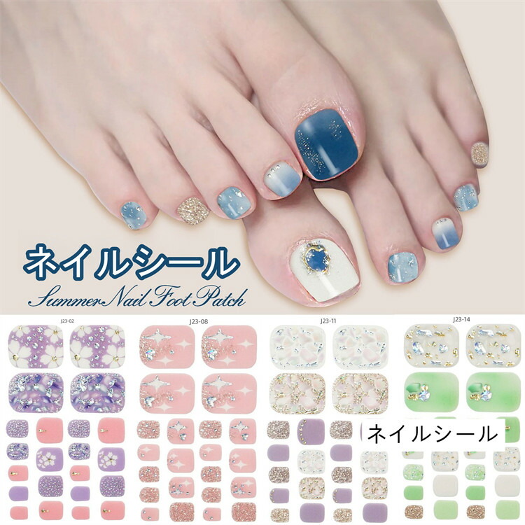 32色展開貼るだけでジェルネイル完成 ネイルシール フットネイル レディース 女性 ネイル用品 足の爪用 デザインチップ セルフネイル かわいい おしゃれ