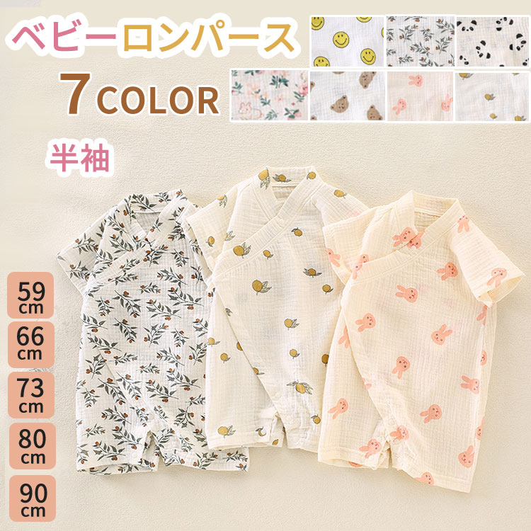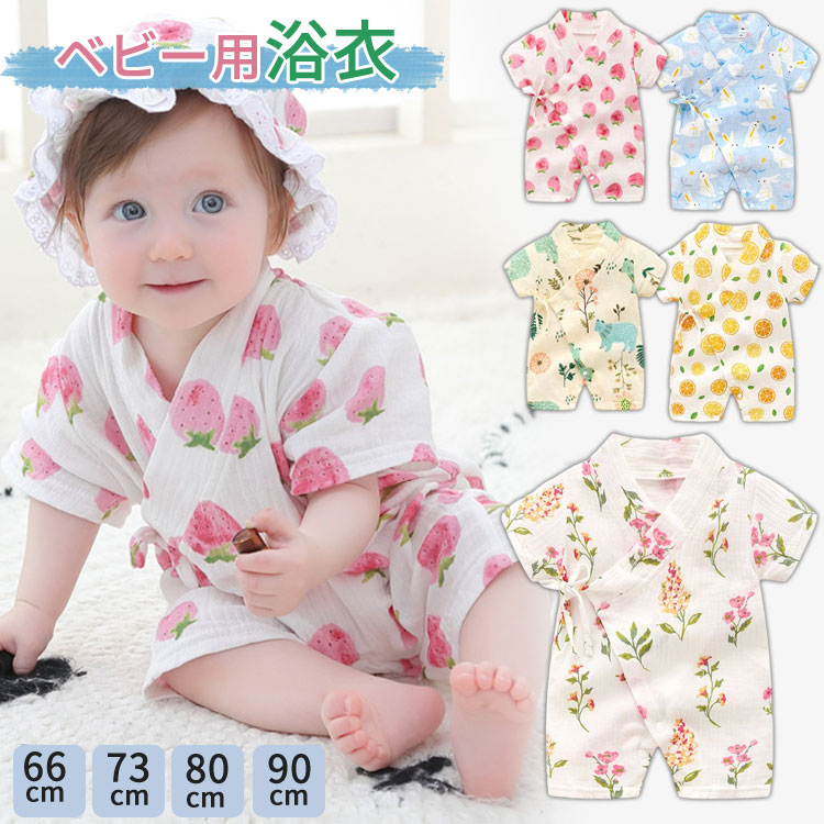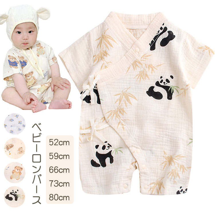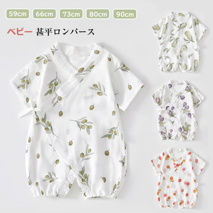 ベビー甚平 ベビーロンパース ベビー服 浴衣 半袖 夏 前開き 男の子 女の子 ガーゼ パジャマ 夏祭り 花火大会 生産祝い 柔らかい 通気性抜群 59cm 66cm 73cm 80cm 90cm