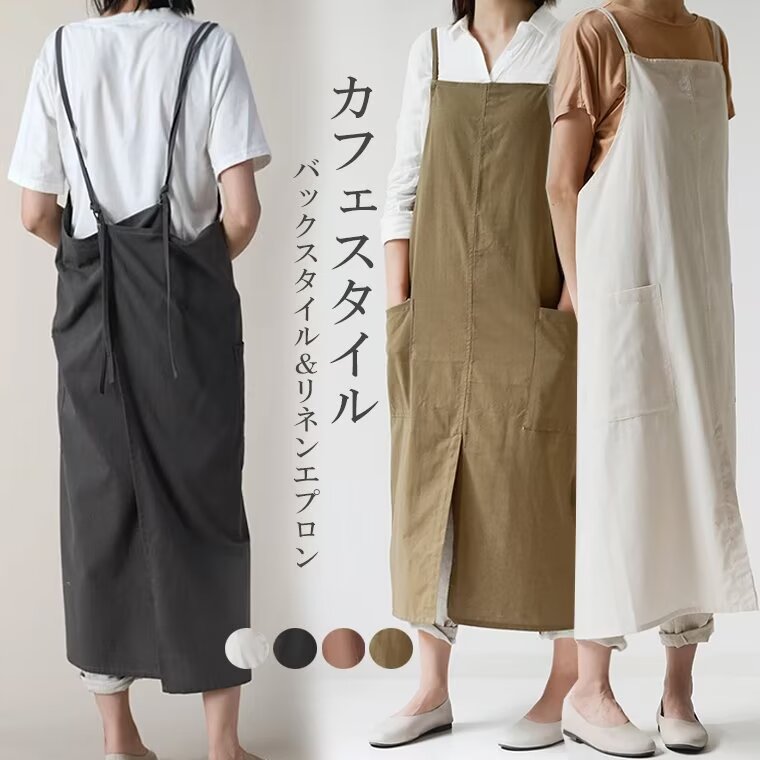 くすみカラーでナチュラルに 全4色 エプロンワンピース 北欧風 ワンピース風 エプロン ノースリーブ カフェエプロン 体型カバー お尻が隠れる 新婚さんエプロン 花屋さん キッチン レディース ワーク