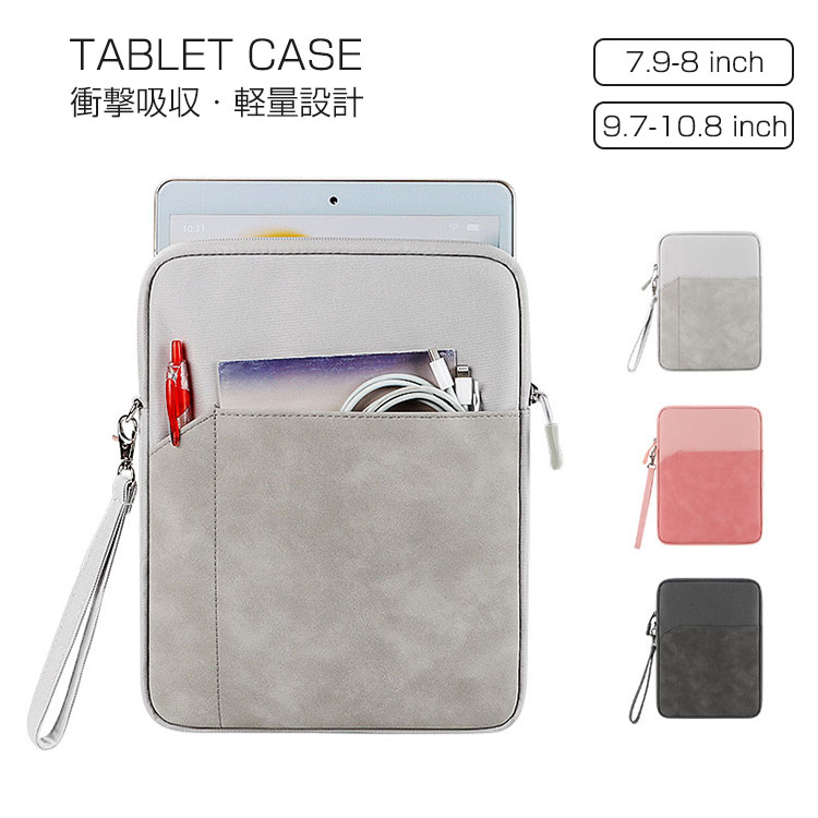 タブレット ケース 7.9 8 9.7 10.8インチ 対応 iPad 軽量 傷防止 インナーケース バッグインバッグ 外せるストラップ付き ドキュメントケース フラットポーチ 男女兼用 おしゃれ ギ