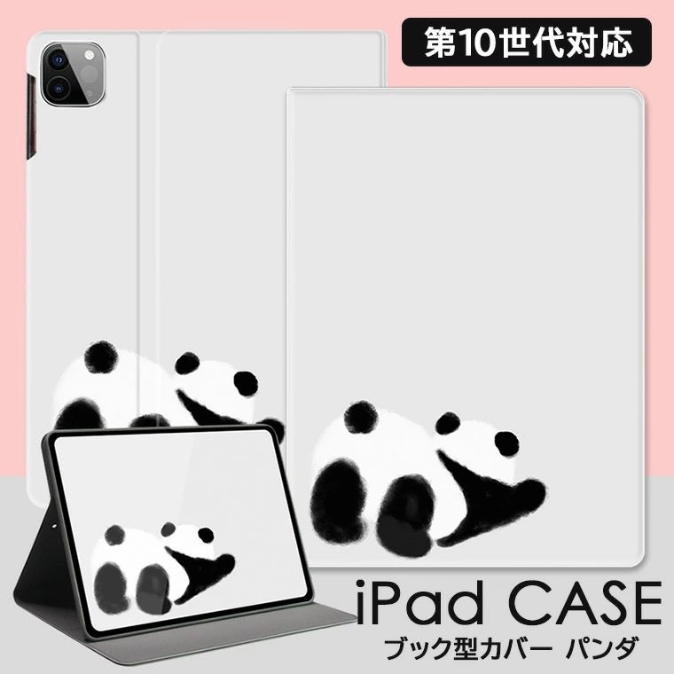 第10世代対応 パンダのイラストが可愛いブック型iPadケース iPadケース iPadカバー ブック型カバー 手帳型 スタンド パンダ iPad Pro 2022 2021 2020 2019 2