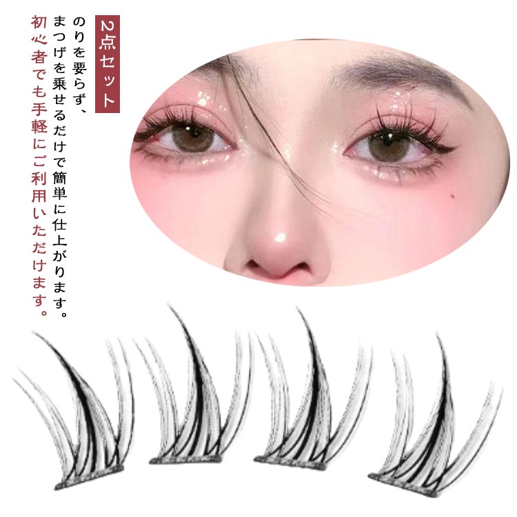 のり不要 部分つけまつげ 繰り返し使える 本体のり付き 2点セット 初心者 つけまつげ のり付き つけまつ毛 接着剤不要 アイメーク 化粧 上まつげ 着脱簡単 ナチュラルメイク メイ ナチュラルまつげ