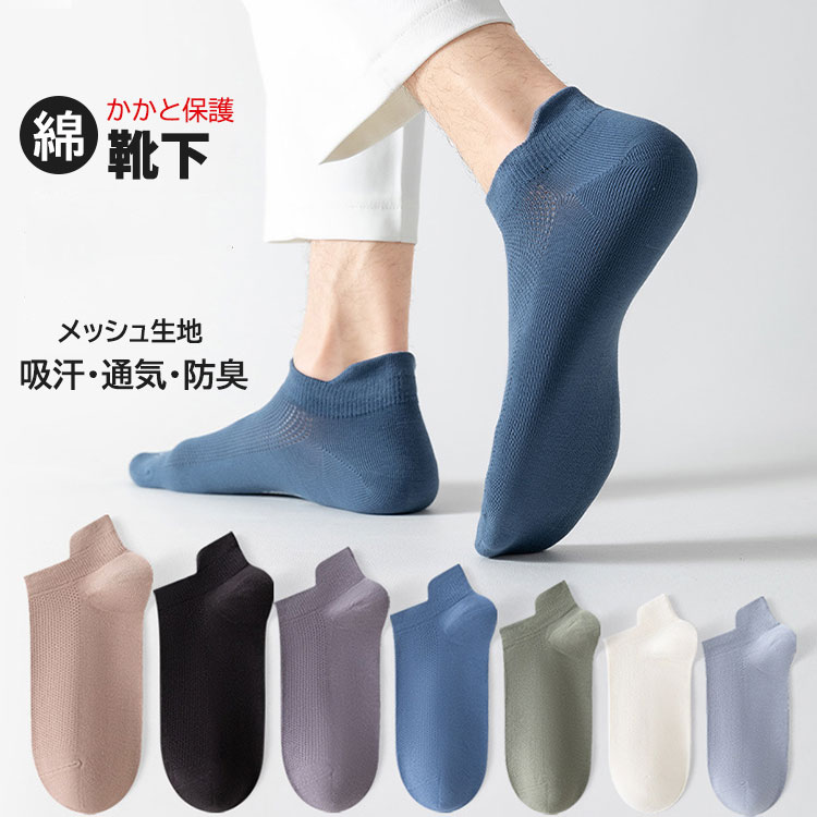 メンズ 靴下 かかと保護 3足セット 5足セット カラーソックス ショートソックス 綿 通気 抗菌 防臭 男の子 学生 おしゃれ くつした カジュアル くつ下 24.5-27cm 7色 オールシーズン