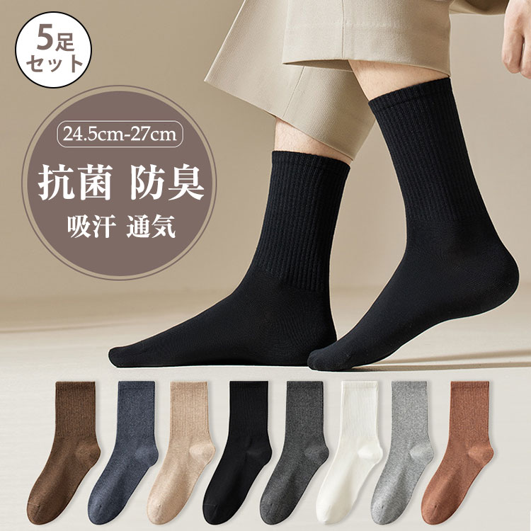 メンズ 靴下 3足セット 5足セット カラーソックス 綿 通気 抗菌 防臭 男の子 学生 アウトドア おしゃれ くつした カジュアル クルーソックス くつ下 24.5-27cm 7色 ホワイト ブラッ