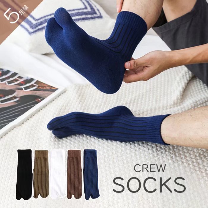 2本指で足指が自由に動く 全5色 5足組 2本指靴下 メンズ ソックス クルーソックス 靴下 足袋 スニーカー用ソックス 指ソックス