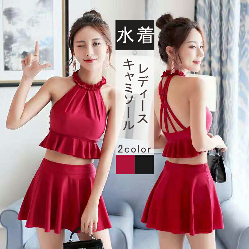 水着 レディース 体型カバー リゾート キャミソール パッド付き セットアップ 40代 大きいサイズ ママ水着 スイムウェア 海水浴 20代 30代 50代