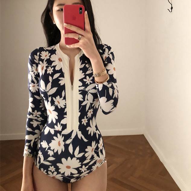 スイムウェア ワンピース水着 紫外線対策 大人 大人っぽい クール モード系 プール ナイトプール リゾート 旅行 フラワー ジッパー ブラック ネイビー 韓国 オルチャン インスタ映え