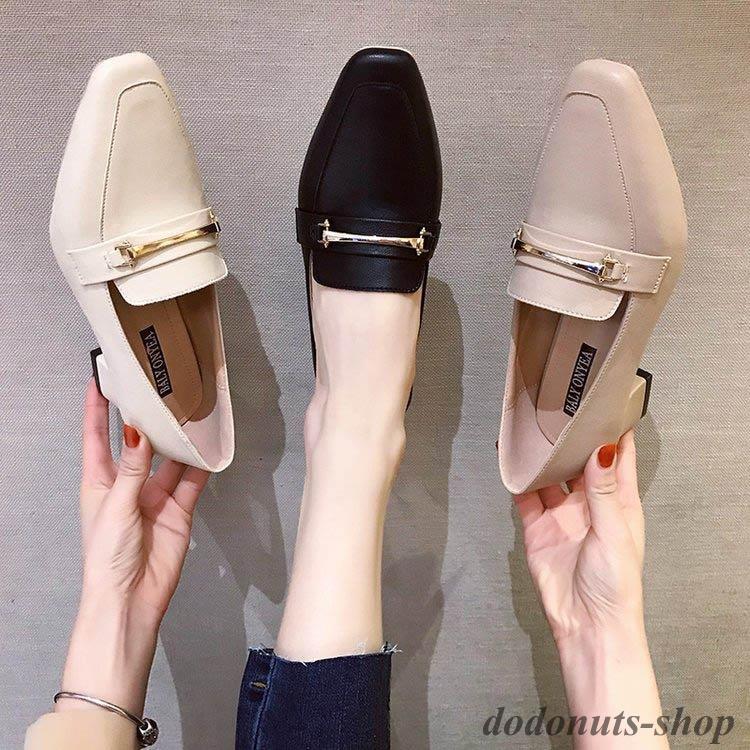 パンプス 春靴 レディース レザーシューズ ローファー オックスフォードシューズ パンプス 中ヒール 黒 太めヒール 歩きやすい 革靴 通勤通学 カジュアル