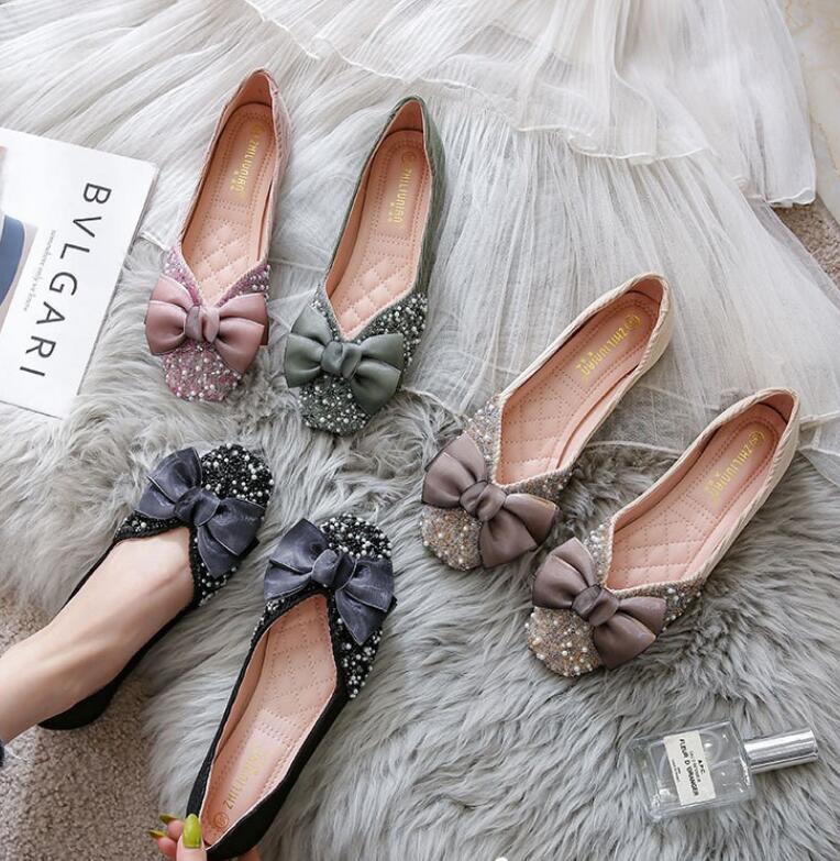 パンプス 痛くない カット キラキラオフィス ローヒール ぺたんこ パール付きバレエシューズ靴 レディース靴 パンプス