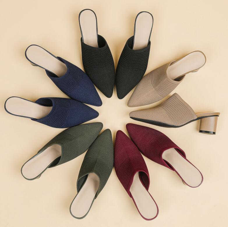 ミュールニットパンプス レディース ミュール 痛くない 脱げない 靴 美脚 疲れにくい 走れる シンプル 履き心地美脚 サンダル