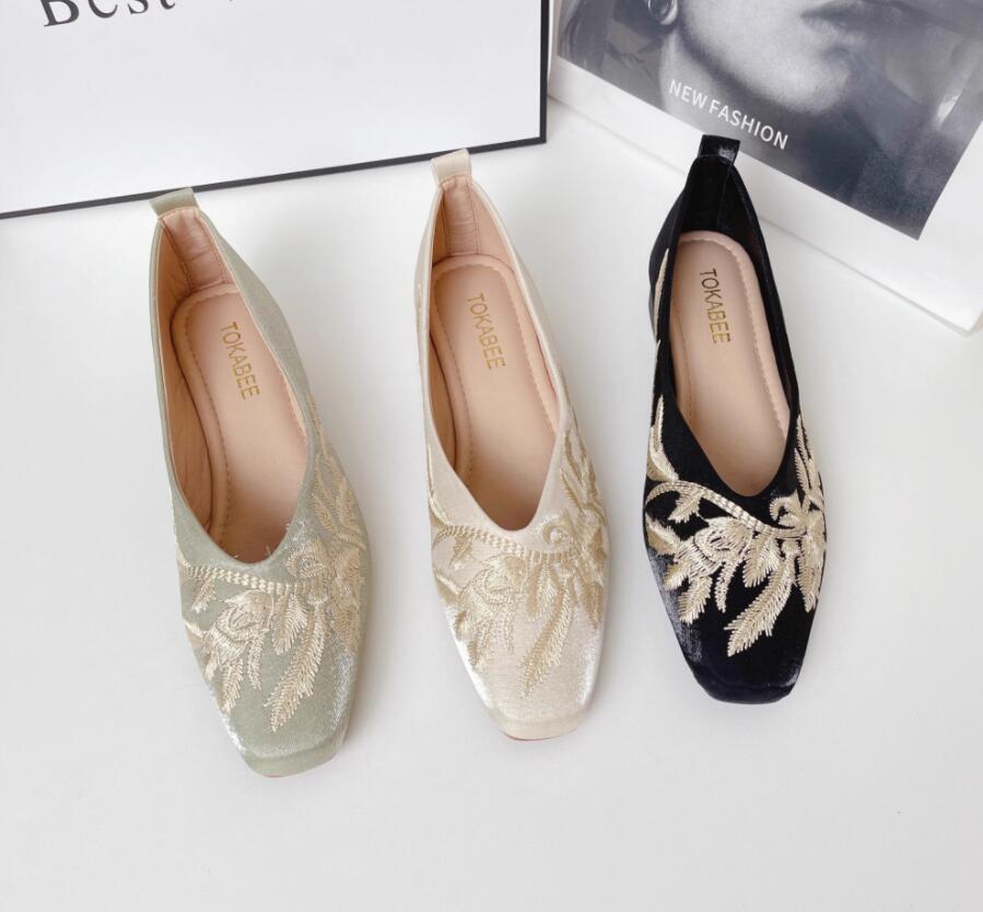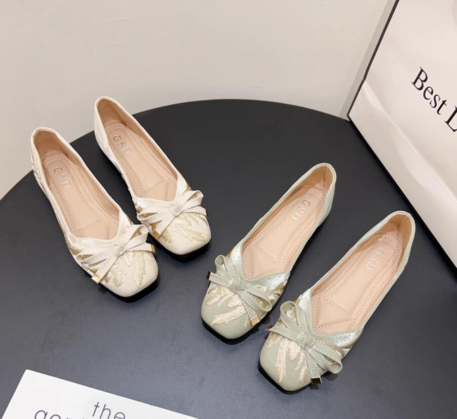 パンプス 痛くない夏 刺繍オフィス ローヒール ぺたんこ バレエシューズフラットパンプス 走れる フラットシューズ 通勤 パンプス