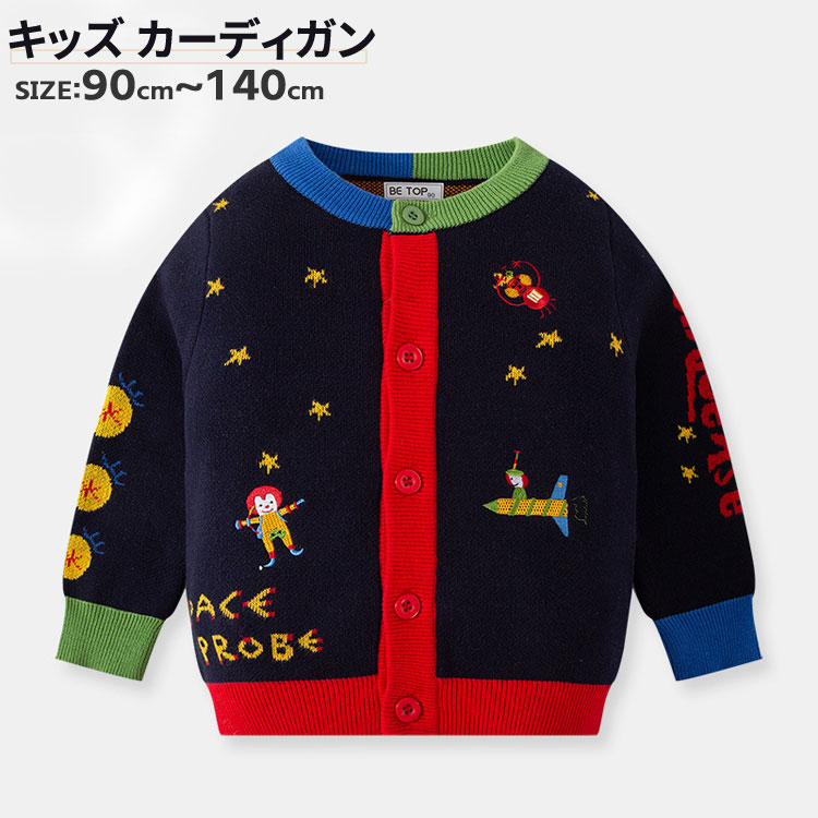 キッズ カーディガン 男の子 長袖 ベビー服 おしゃれ 軽量 宇宙柄 ニットカーディガン 春秋冬 アウター セーター 子供服 トップス 子ども服 羽織り 上着 通園 保育園 幼稚園 学生 可愛い おし