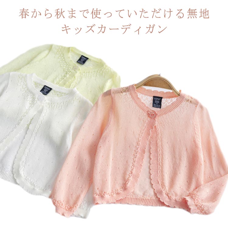 女の子 キッズ カーディガン UV uvカット ボレロ 長袖 子供 薄手 春夏 UVカーディガン クルーネック 冷房 サマーカーディガン ベビー服 女子 スクール 可愛い カジュアル シンプル