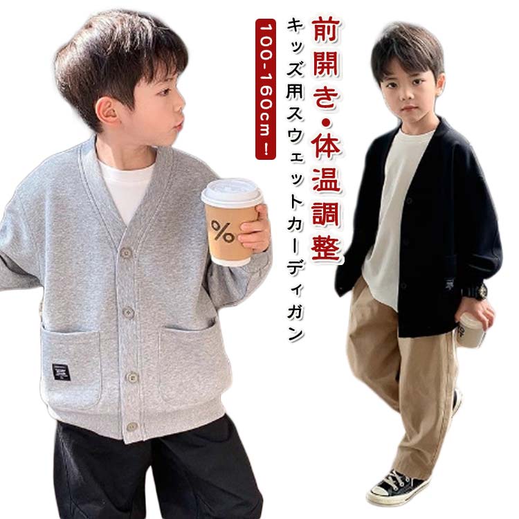 小学生 男の子 Vネック 女の子 秋 トップス 春 スウェット アウター 長袖 カーディガン 子供服 無地 体温調整 子ども カジュアル 通学 通園 キッズ 冬 シンプル