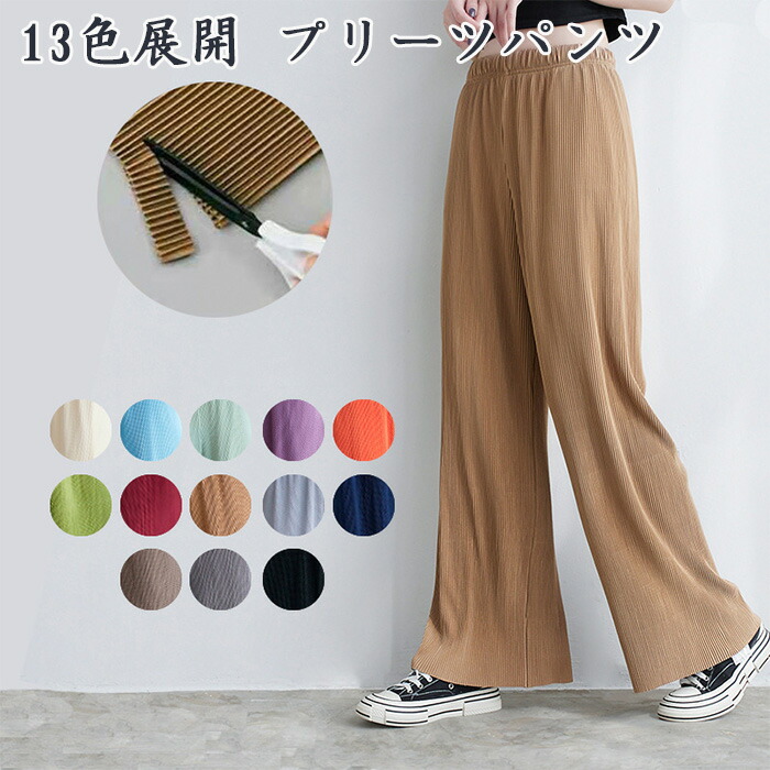 13色展開 プリーツパンツ レディース ボトムス ガウチョパンツ フレア ゆったり