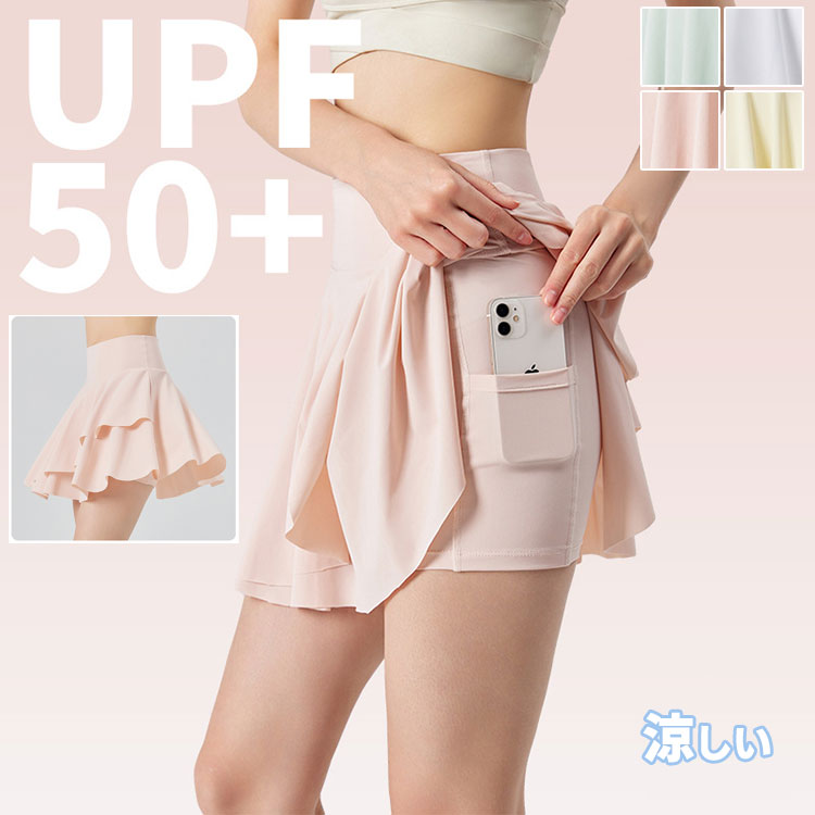 涼しい 紫外線対策 UV ゴルフ スカート レディース 夏 テニス プリーツスカート インナーパンツ ポケット付き 軽量 通気性 吸汗速乾 サラサラ フィットネス トレーニング ランニング