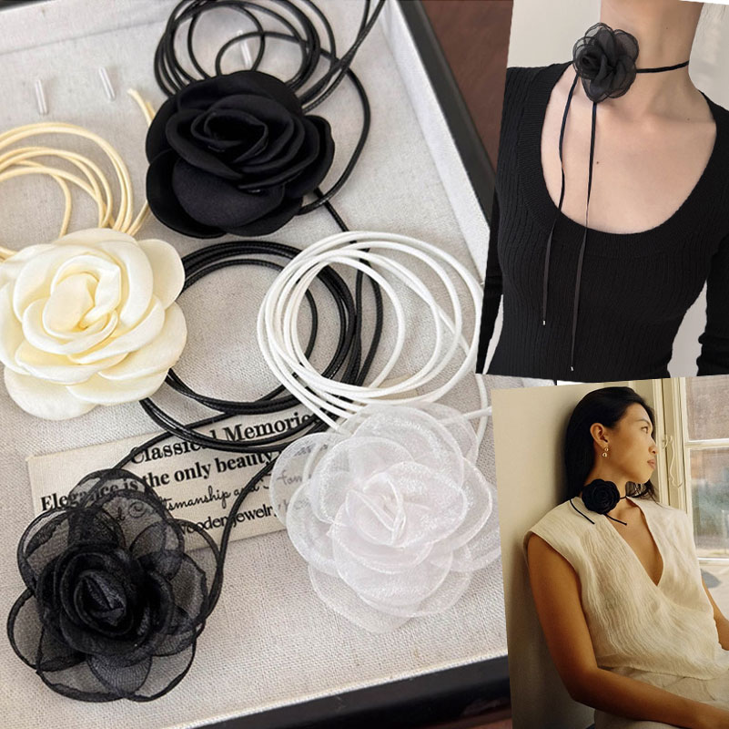 1K ローズ ネックレス レディース フラワー アクセサリー チョーカー ローズフラワー フラワーネックレス 花 薔薇 バラ 可愛い お洒落 シンプル チョーカーネックレス 韓国ファッション 上品