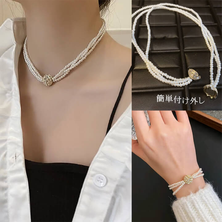 H-6ネックレス マグネット式 パールネックレス ジルコン可愛い ギフト誕生日プレゼント贈り物 ブレスレットレディース