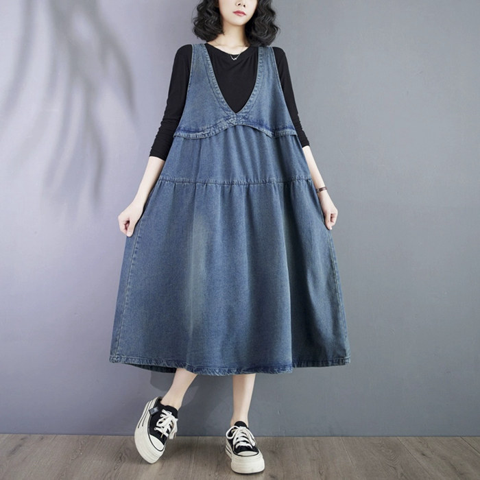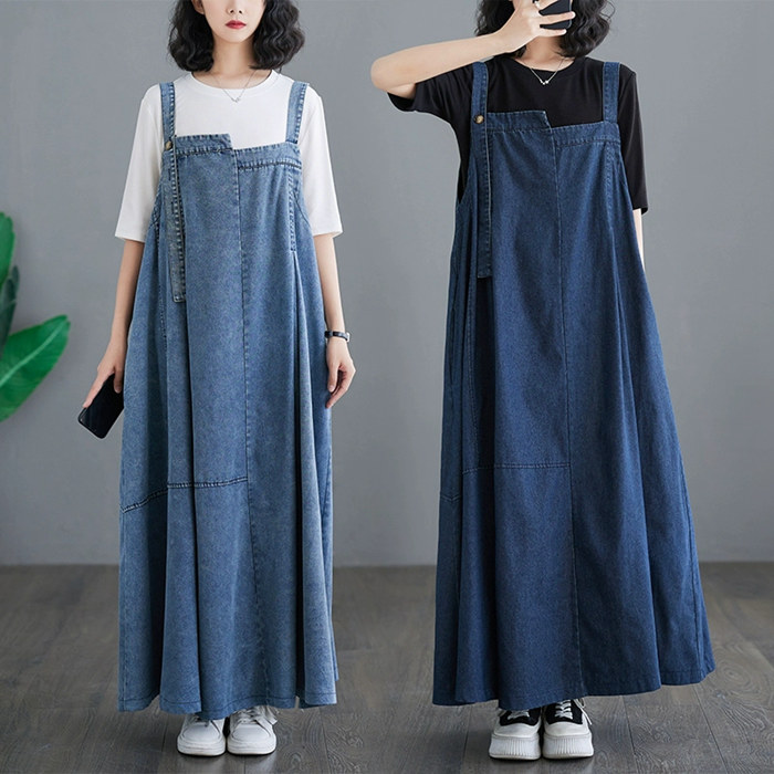 デニム ジャンパースカート ロング 春夏 オーバーオール レディース デニムサロペット ワンピース スカート ノースリーブワンピース マキシ ジャンスカ チュニック 大きいサイズ コットンワンピース