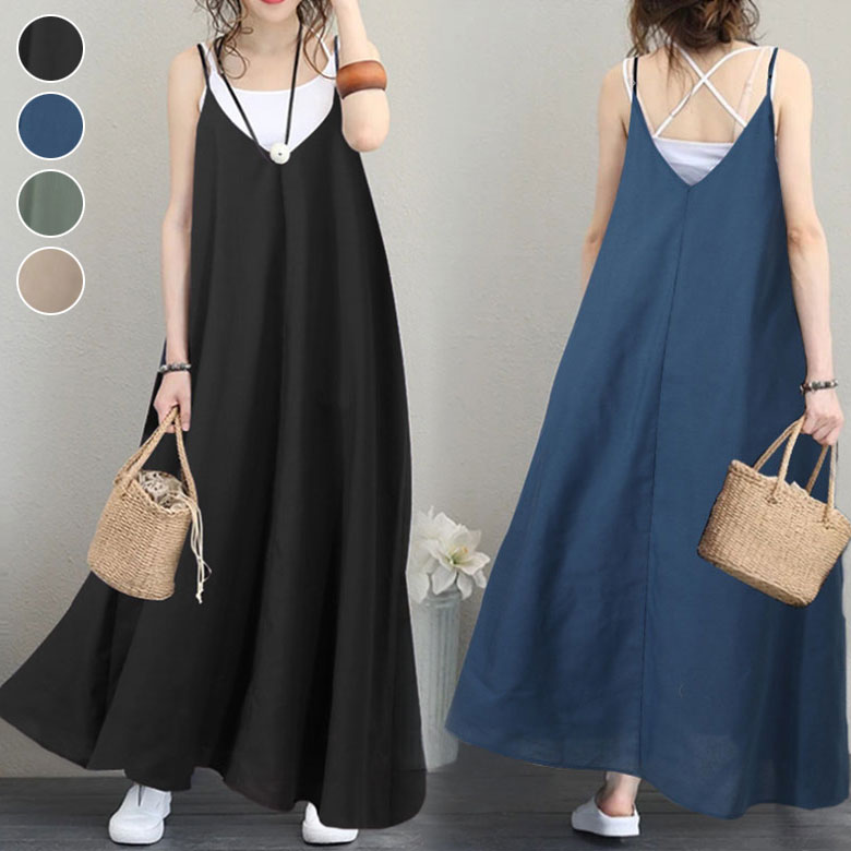 ロングワンピース レディース ワンピース サロペット ジャンパースカート キャミワンピース ワンピ ノースリーブ 春 夏 秋 リラックス ゆったり オシャレ 可愛い 韓国ファッション ドレス