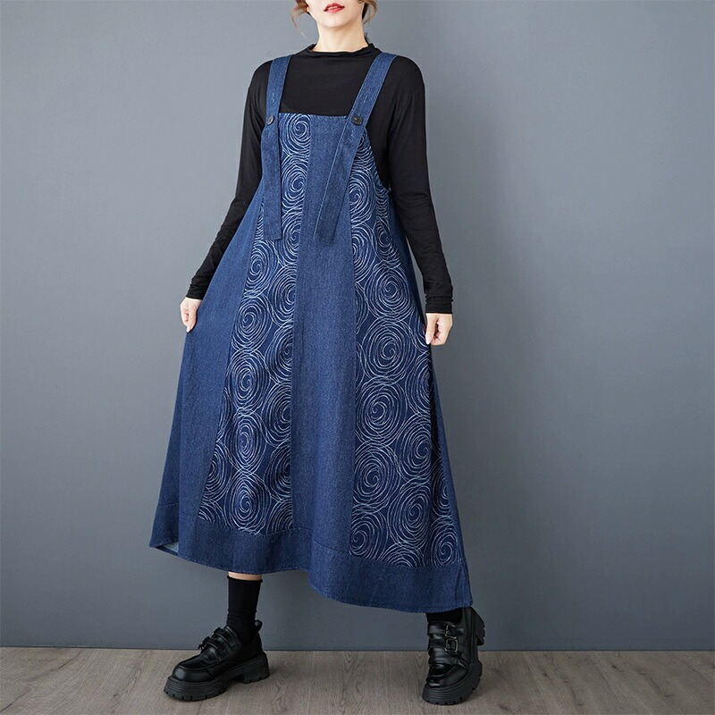 デニム ジャンパースカート ジャンスカ チュニック サロペット ロング レディース 秋 ワンピース 可愛い デニムサロペットスカート スカート Aライン 大きいサイズ 春 マキシ丈 体型カバー ゆ 夏