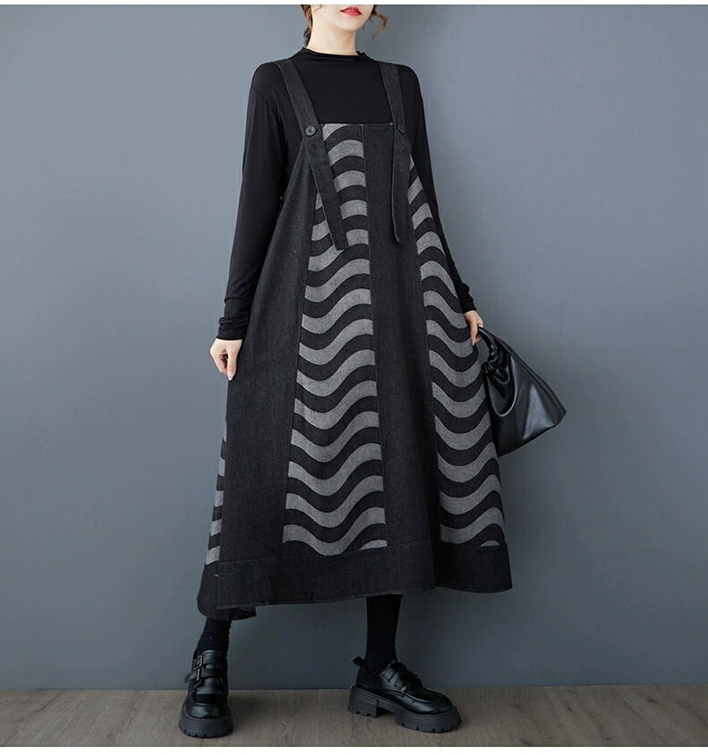 ワンピース ロング ジャンパースカート デニム ジャンスカ 秋冬 チュニック ロングワンピース プルオーバー ドレス ロング丈 袖なし Aライン ノースリーブ レディース サロペット スカート ワンピ