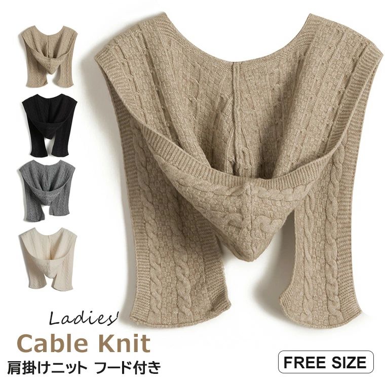 フード付きレディース用肩掛けケーブルニット レディース 肩掛けニット ケーブルニット フードマフラー フード付き マフラー ストール 肩掛け ニット ニットマフラー ショルダー トップス 防寒 全4