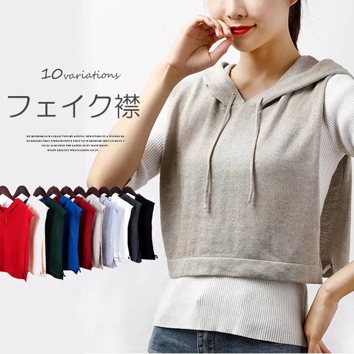 旬の雰囲気が溢れるリブ仕様が魅力的 全10色 フード付き 付け襟 つけ襟 フェイクカラー ネックウォーマー ニット カジュアル レイヤード 重ね着 防寒