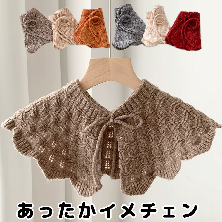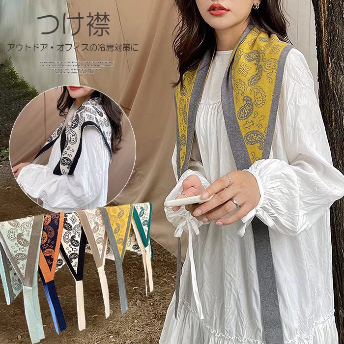 キャンプやオフィスの冷房対策でも 付け襟 レディース ビッグカラー ペイズリー柄 ニット つけ衿 肩掛け 肩かけニット 可愛い カジュアル レトロ 重ね着
