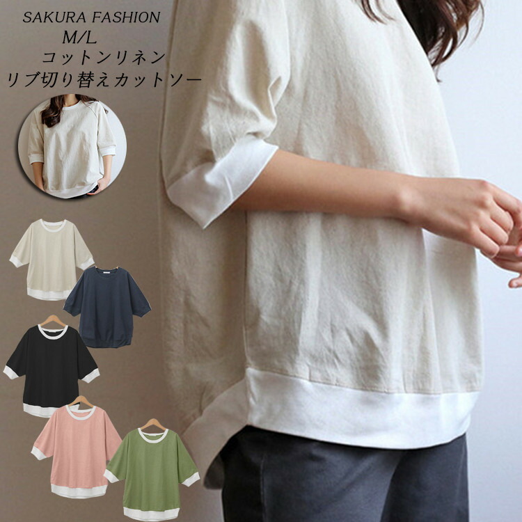 カットソー レディース プルオーバー 七分袖 トップス カジュアル おしゃれ ラグランスリーブtシャツ